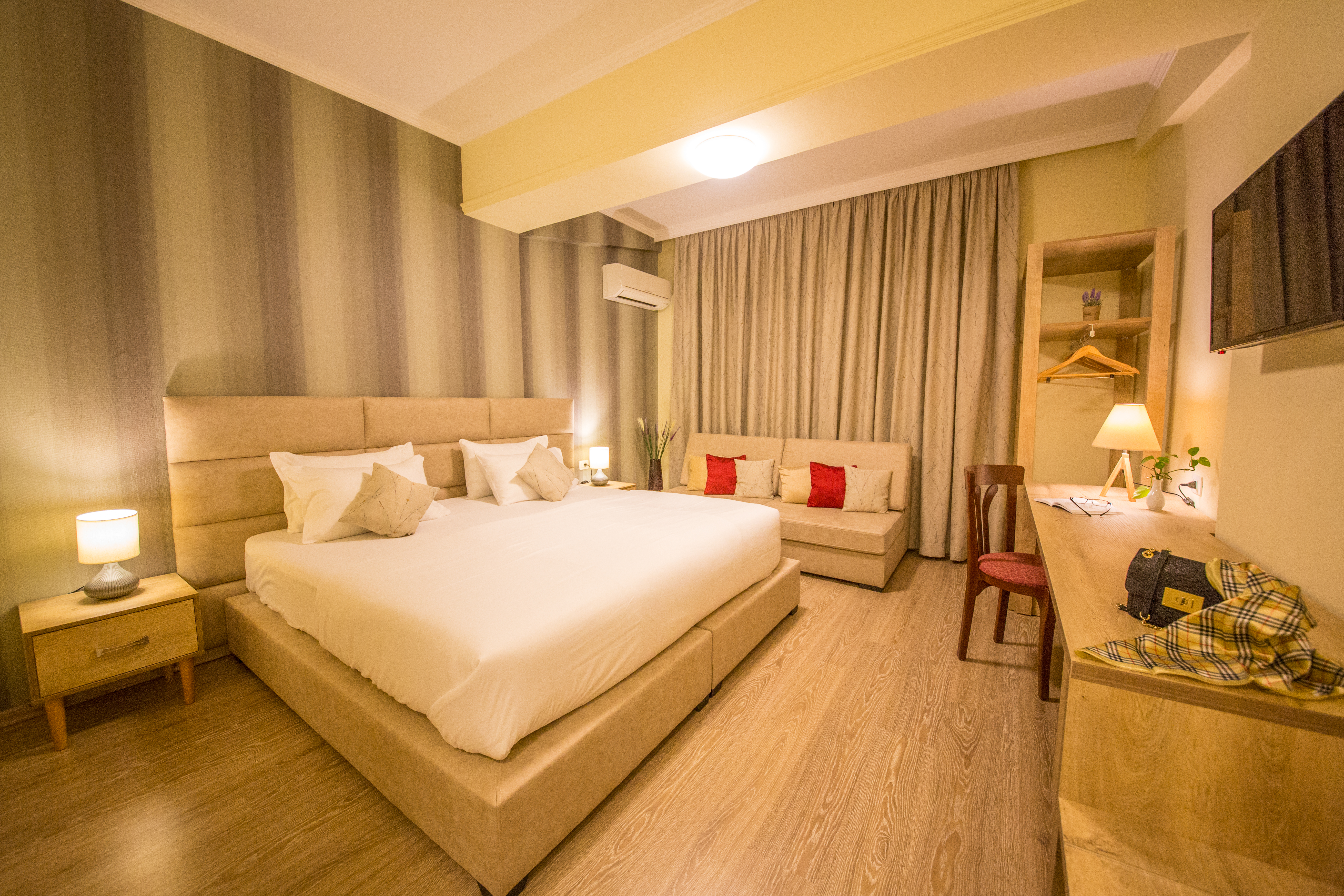This hotel enjoys a wonderful setting in Tirana. The hotel is set at the heart of Albania, lying just 3 km away from the centre of the city. A wealth of attractions, as well as shopping, dining and entertainment venues can be found nearby. This wonderful hotel enjoys a charming design, blending harmoniously with its surroundings. The guest rooms are elegantly appointed, featuring refreshing tones for a peaceful ambience. Guests will be pleased by the wide range of facilities and services that the hotel has to offer. This hotel delivers a high level of service, complemented by professional staff and a relaxed ambience.