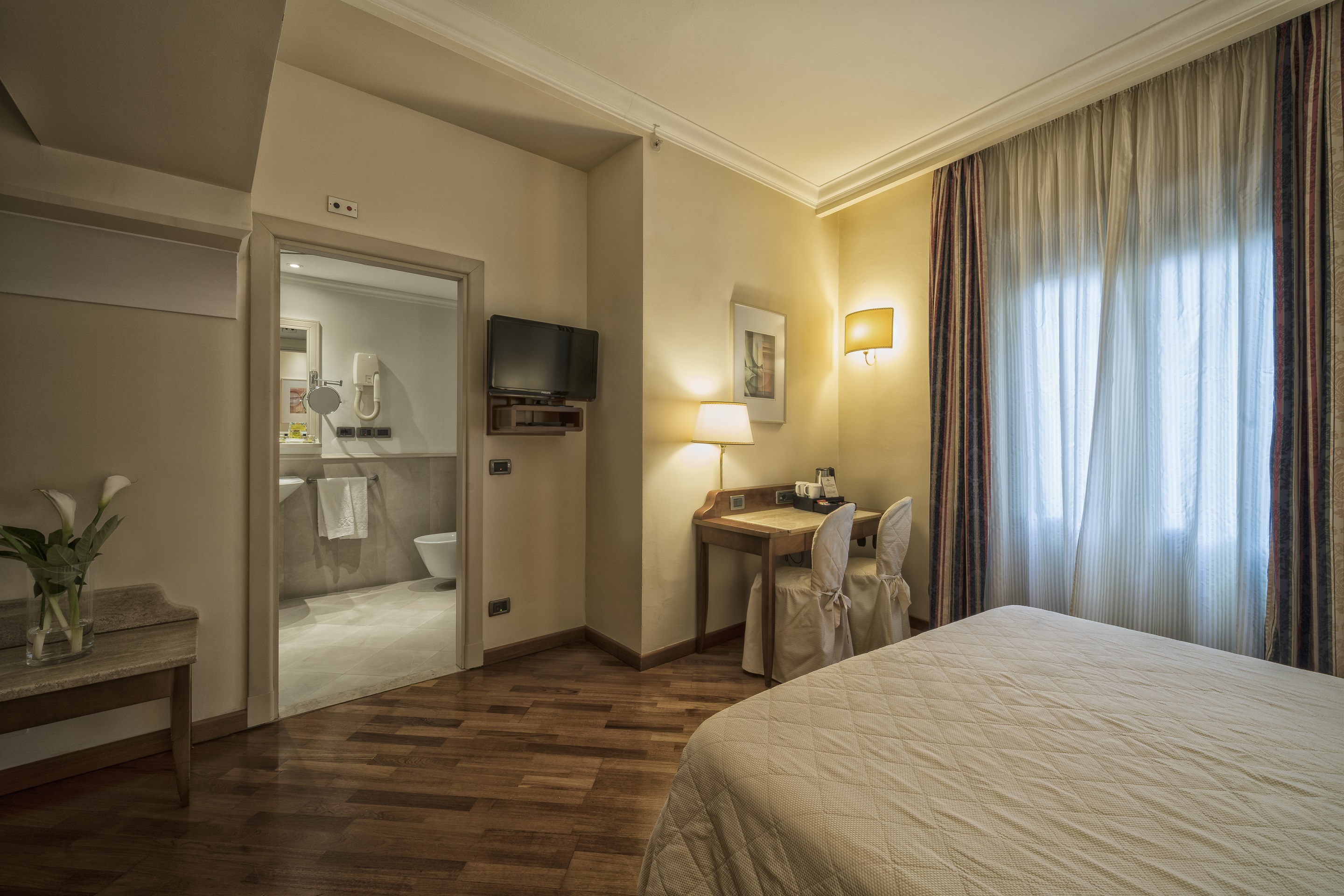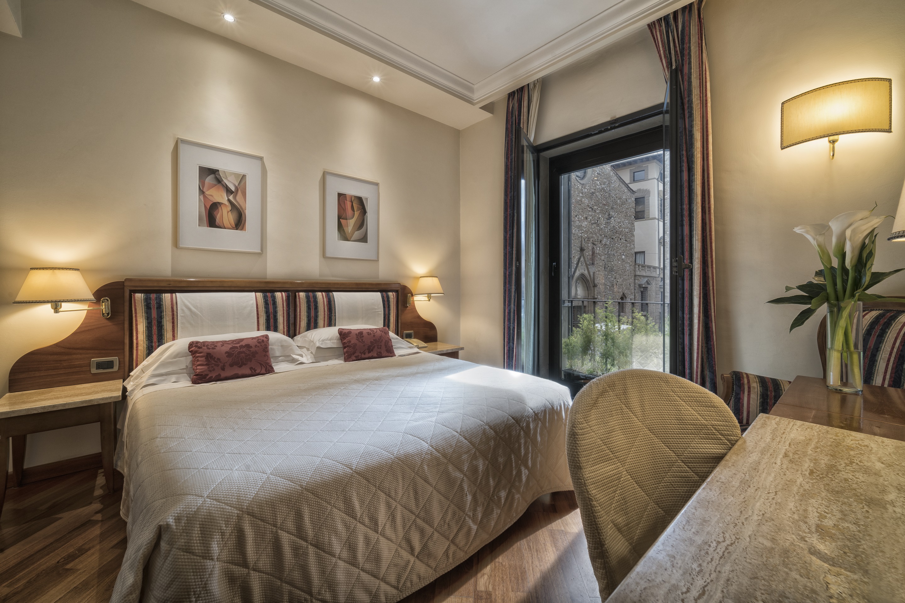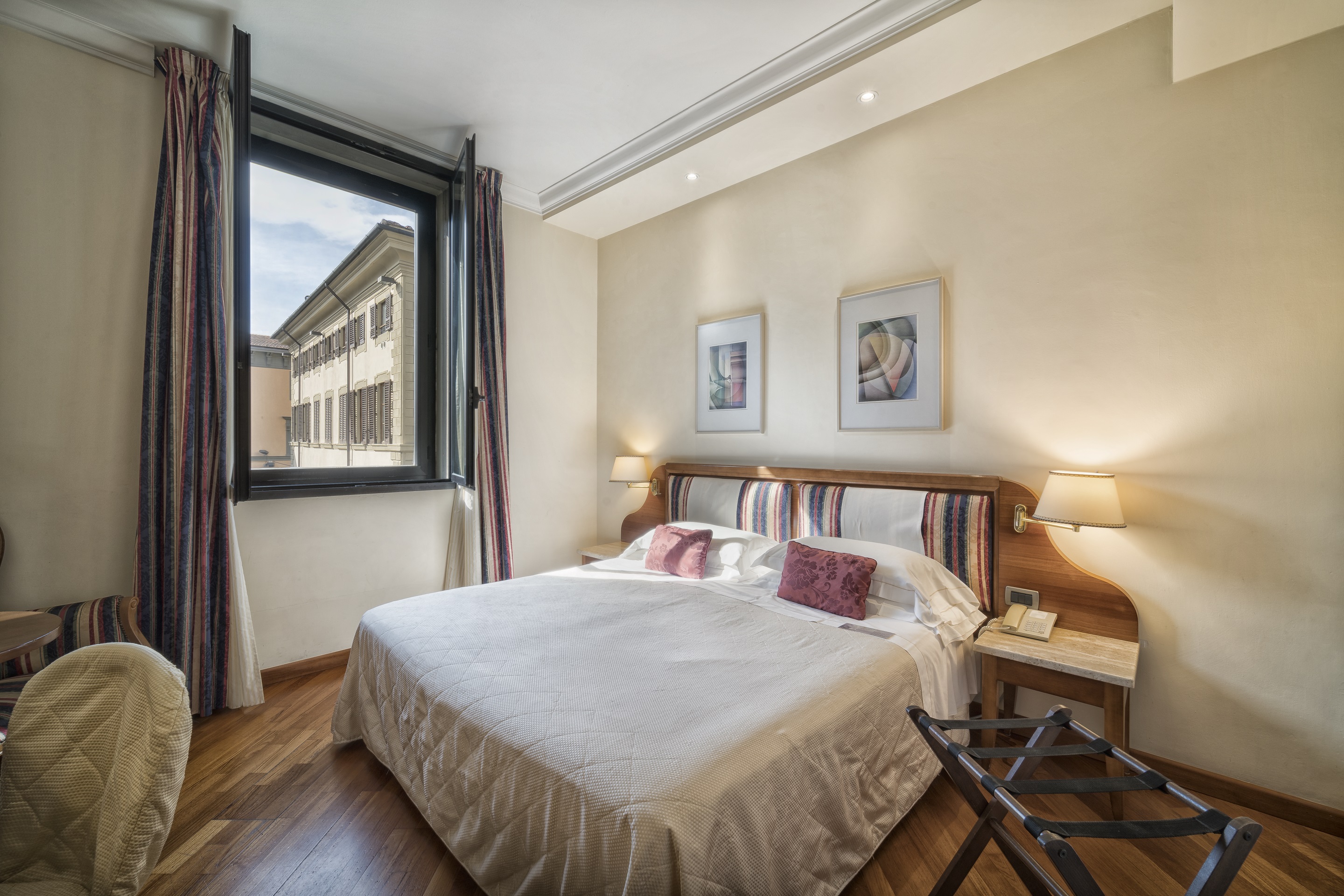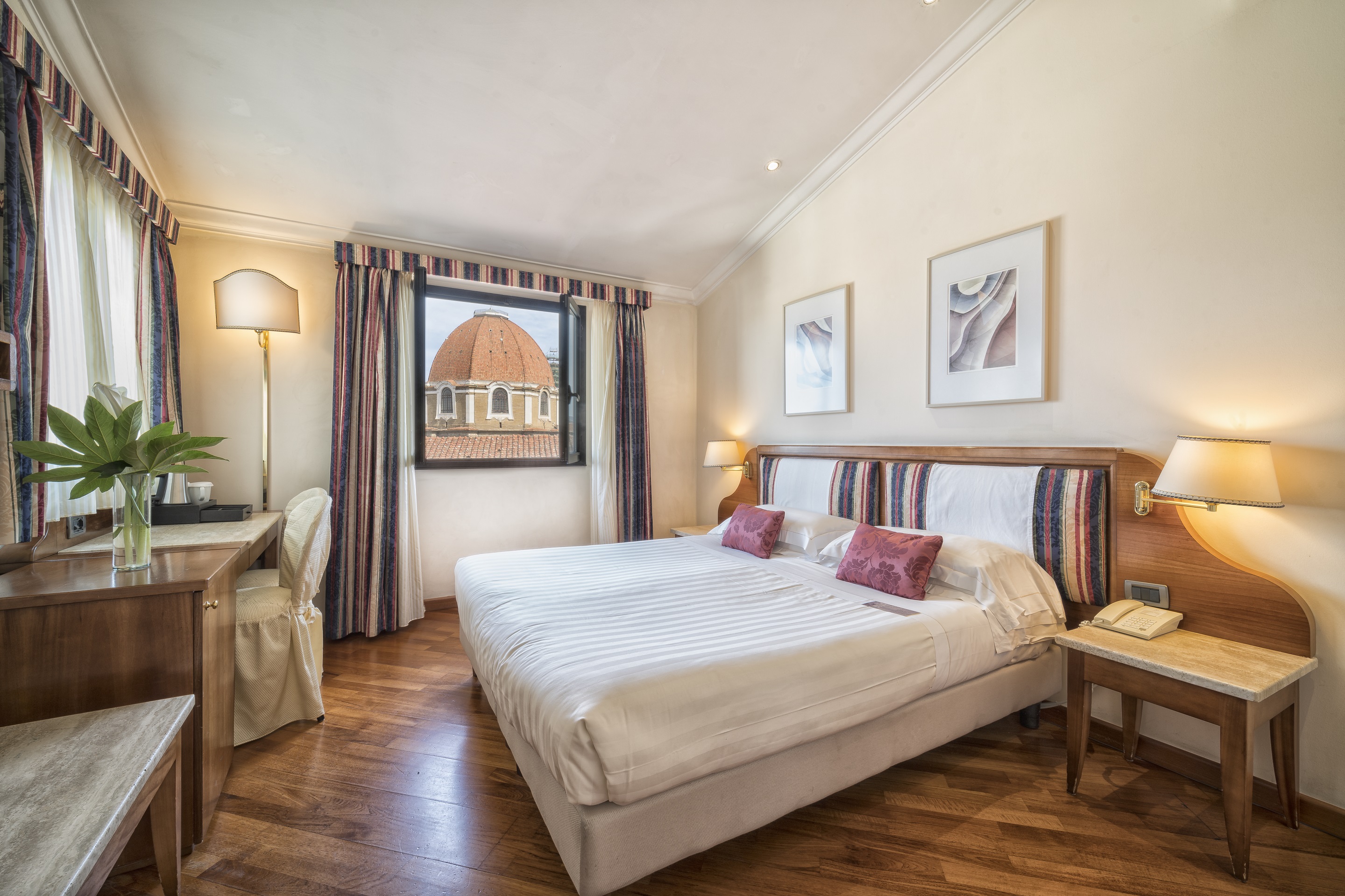 The rooms of the historic hotel have a classic design exuding timeless elegance. Features include air-conditioning, flat-screen TV and complimentary WIFI. The hotel is part of the “Centro Congressi al Duomo” cultural centre and provides the “Auditorium al Duomo”, a fantastic conference facility. Guests can taste Tuscan specialities, including the excellent wine, at the Caffè Astra al Duomo. A wonderful place to visit this historic city.