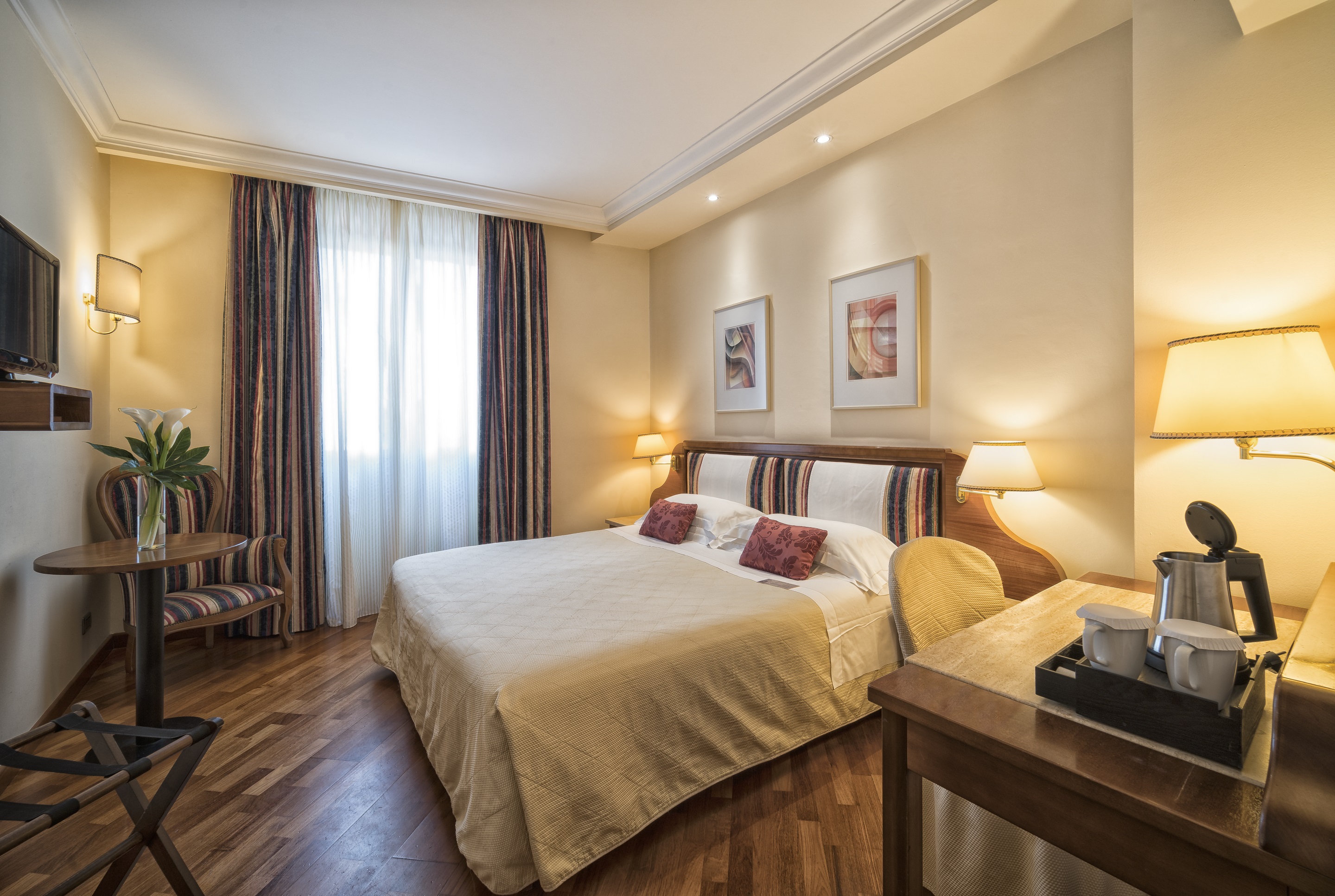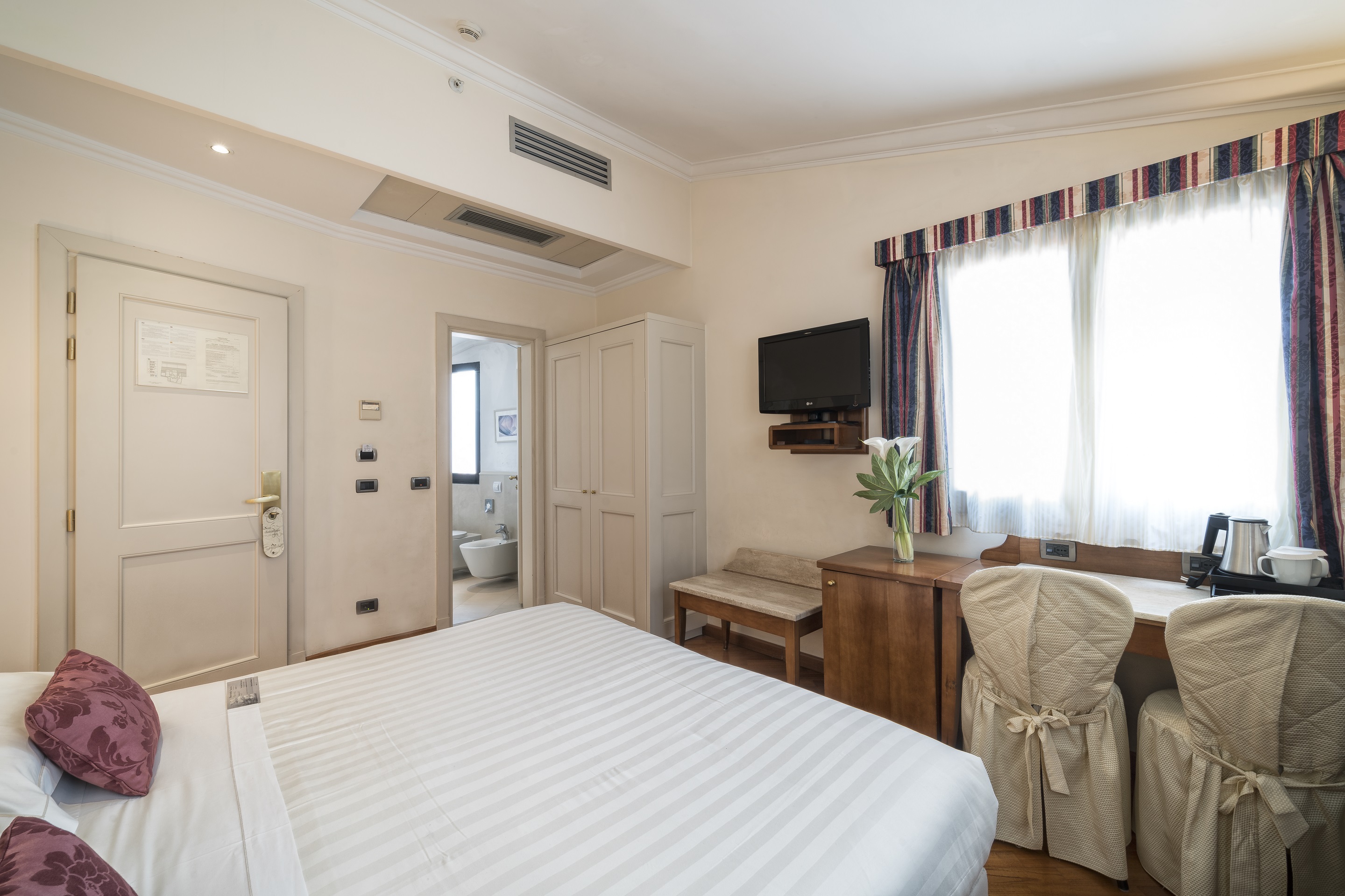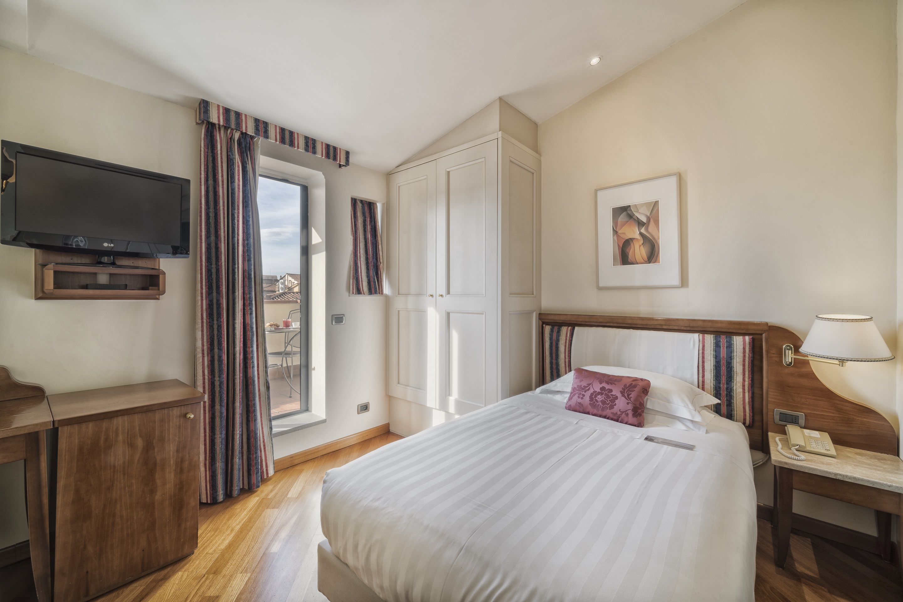 The rooms of the historic hotel have a classic design exuding timeless elegance. Features include air-conditioning, flat-screen TV and complimentary WIFI. The hotel is part of the “Centro Congressi al Duomo” cultural centre and provides the “Auditorium al Duomo”, a fantastic conference facility. Guests can taste Tuscan specialities, including the excellent wine, at the Caffè Astra al Duomo. A wonderful place to visit this historic city.