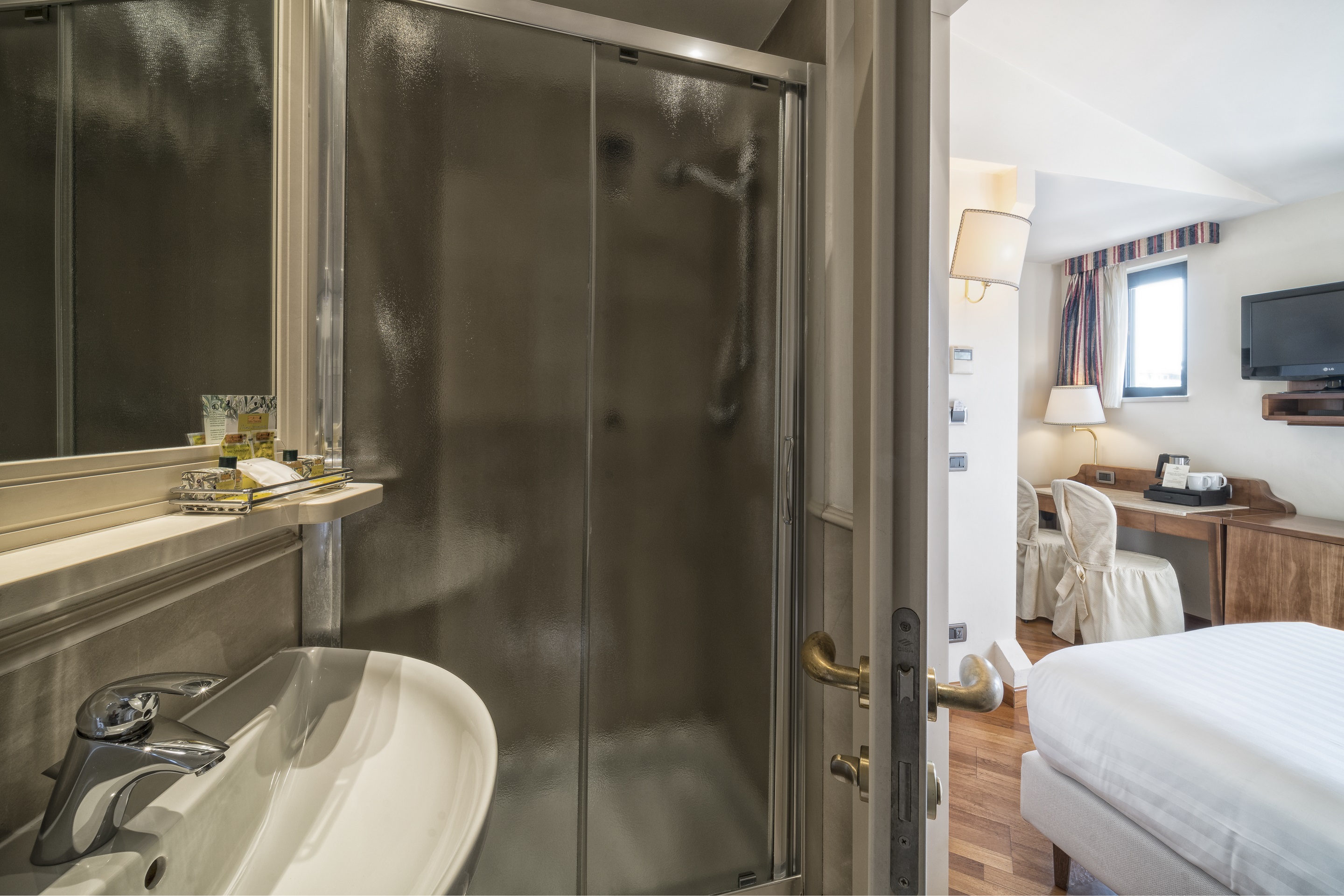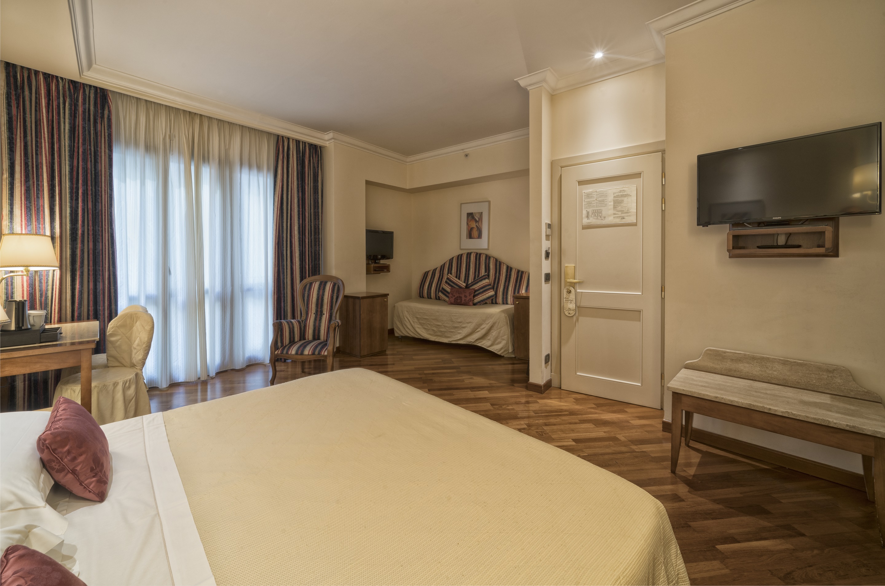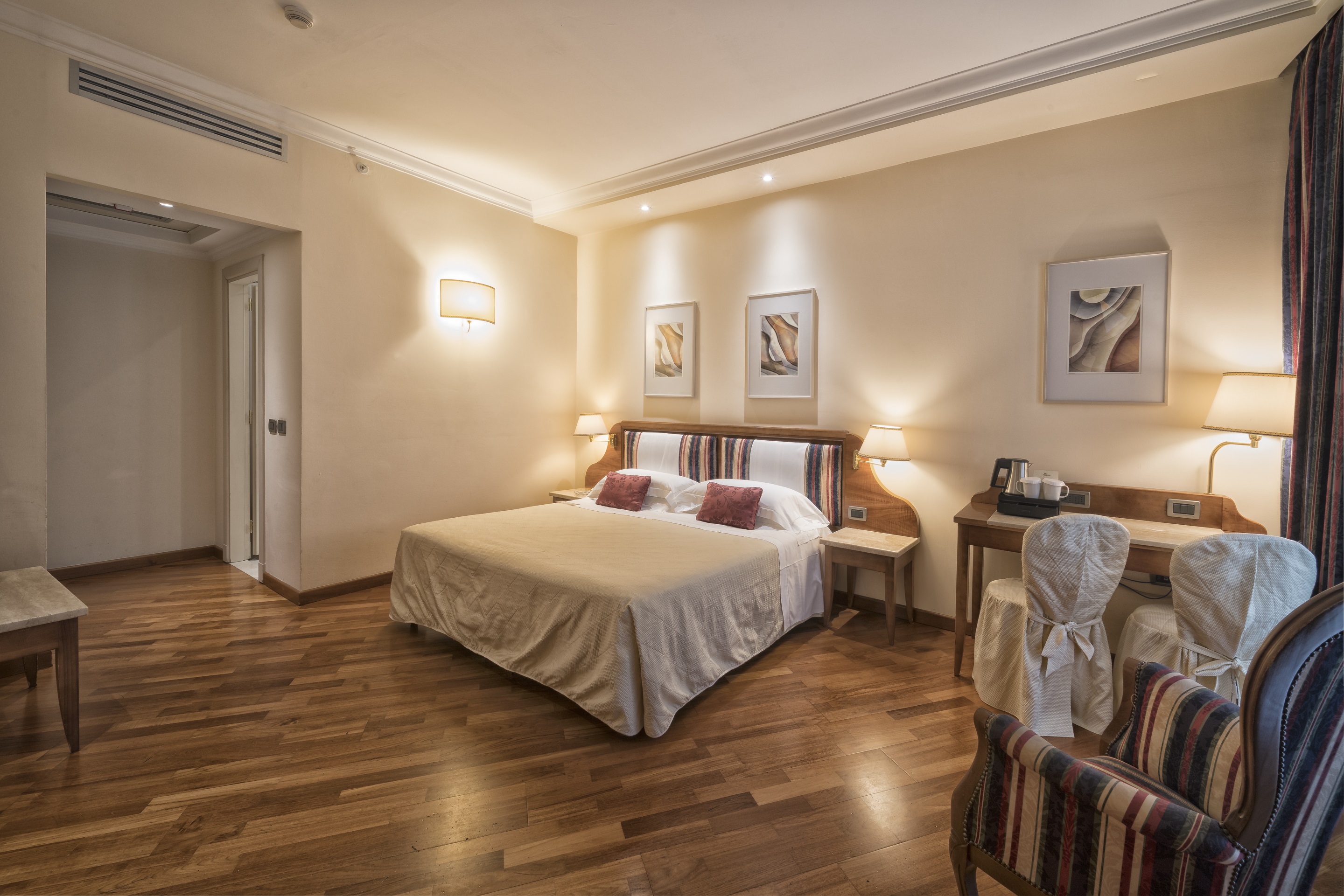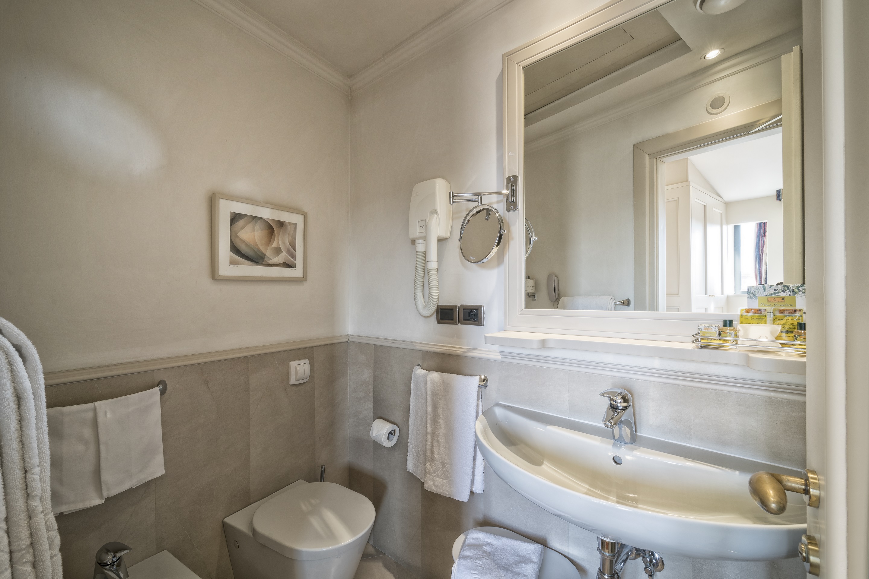 The rooms of the historic hotel have a classic design exuding timeless elegance. Features include air-conditioning, flat-screen TV and complimentary WIFI. The hotel is part of the “Centro Congressi al Duomo” cultural centre and provides the “Auditorium al Duomo”, a fantastic conference facility. Guests can taste Tuscan specialities, including the excellent wine, at the Caffè Astra al Duomo. A wonderful place to visit this historic city.