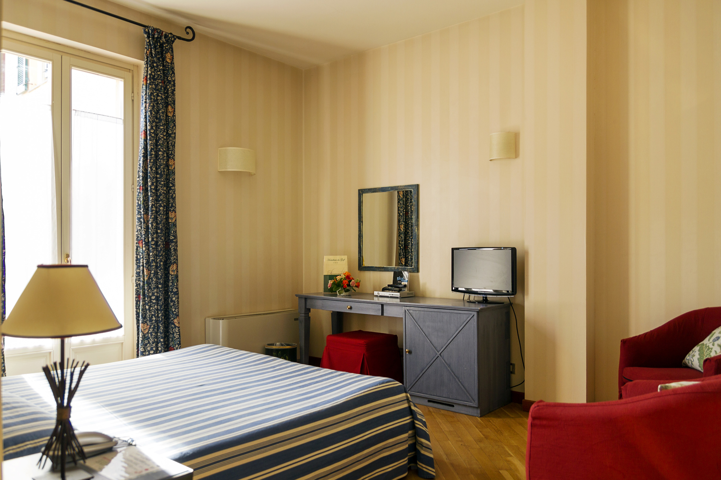The Hostellerie du Golf has 26 rooms, some with a view of the golf course, others facing the olive tree courtyard and the swimming pool. Rooms are all different offering modern comforts and rich little details with warm atmosphere. Furniture, curtains and sofas' colours, floor parquet and carpets make you feel at home, as if you were in a country house.