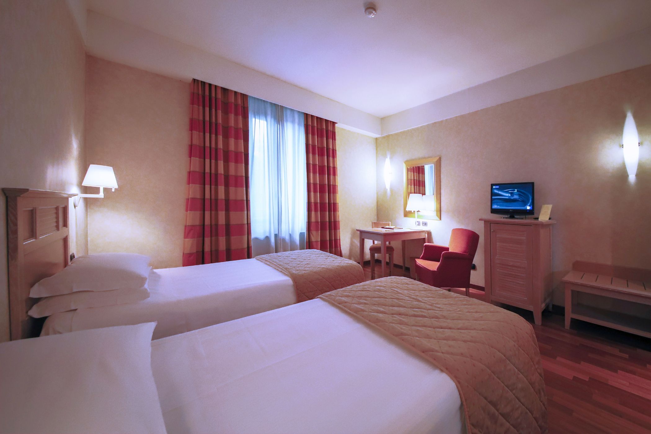 Monica Hotel Fiera is the perfect 4 stars hotel representing the ideal stay for business and leisure travellers. The hotel is located just few minutes away from the exhibition center “Fiera Milano” in Rho, which is connected by a free shuttle bus service during the main exhibitions. Monica Hotel Fiera offers a special atmosphere thanks to its elegant and welcoming spaces created to make you feel a special Guest at every stay in our hotel. Monica Hotel Fiera is surrounded by a wide garden of 20.000 mq, and offers 71 rooms in the main building equipped with typical italian style fornitures and televisions with a selection of Sky cinema and Sky sport channels, and other 22 economy rooms in the “La Residenza”, our annex separated from the main building by a street to cross.