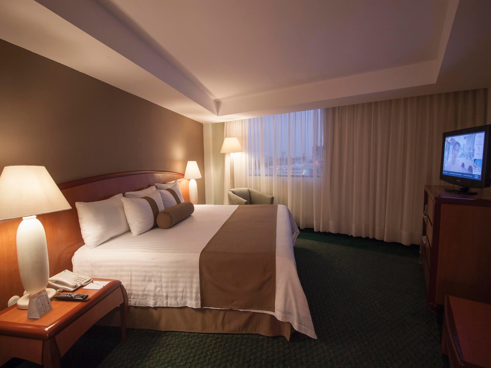 The hotel is located 10 minutes from the Banamex centre and 30 minutes' drive from Plaza Satélite, Mundo E and the airport. Renovated in 2001, this city hotel for business or pleasure travellers has 114 rooms distributed over 4 floors. Guests are welcomed in a lobby. The hotel features a bar and a restaurant. There is also a tourist information counter, air conditioning in public areas, a business centre and convention halls, a games room and 24-hour room service (fees apply). The rooms are comfortable and offer air conditioning, a telephone, high-speed Internet access, a hairdryer, iron and a coffee maker. Rooms with facilities for disabled persons and for non-smokers are available. The hotel offers a gym equipped with cardiovascular equipment and weights, and a spa. The hotel has a restaurant.