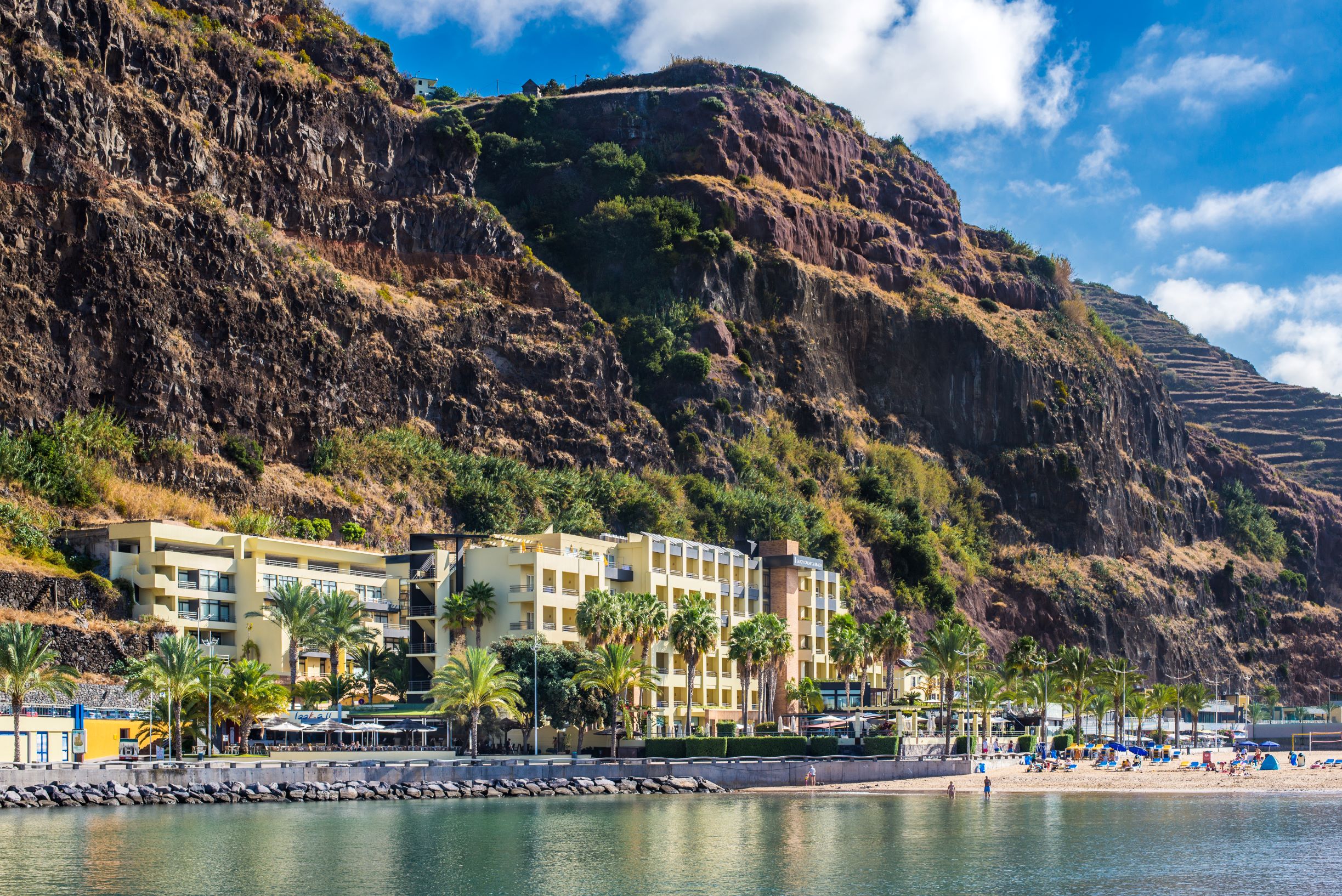 The hotel is an all inclusive hotel situated on the South West coast of Madeira Island, between a marina, mountains and a sandy beach. An ideal Hotel for families, it has a relaxed and friendly atmosphere. Guests can reach the beach and various shopping venues within a minute. Restaurants, the bus station and other links to the public transport network are all just a 2-minute walk away. It is 10 minutes to the city centre and Madeira International Airport is approximately half an hour from the hotel. This family-friendly beach hotel comprises a total of 153 accommodation units, of which 5 are suites and 20 are apartments. The decoration of the interiors is bright and modern and were totally renovated in 2017.