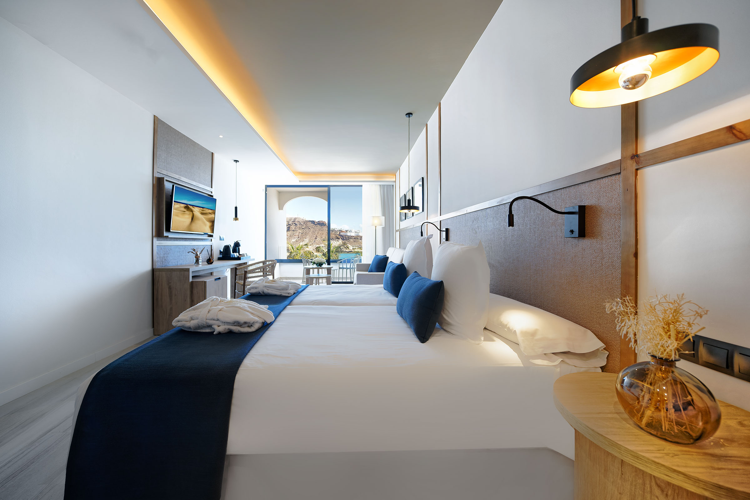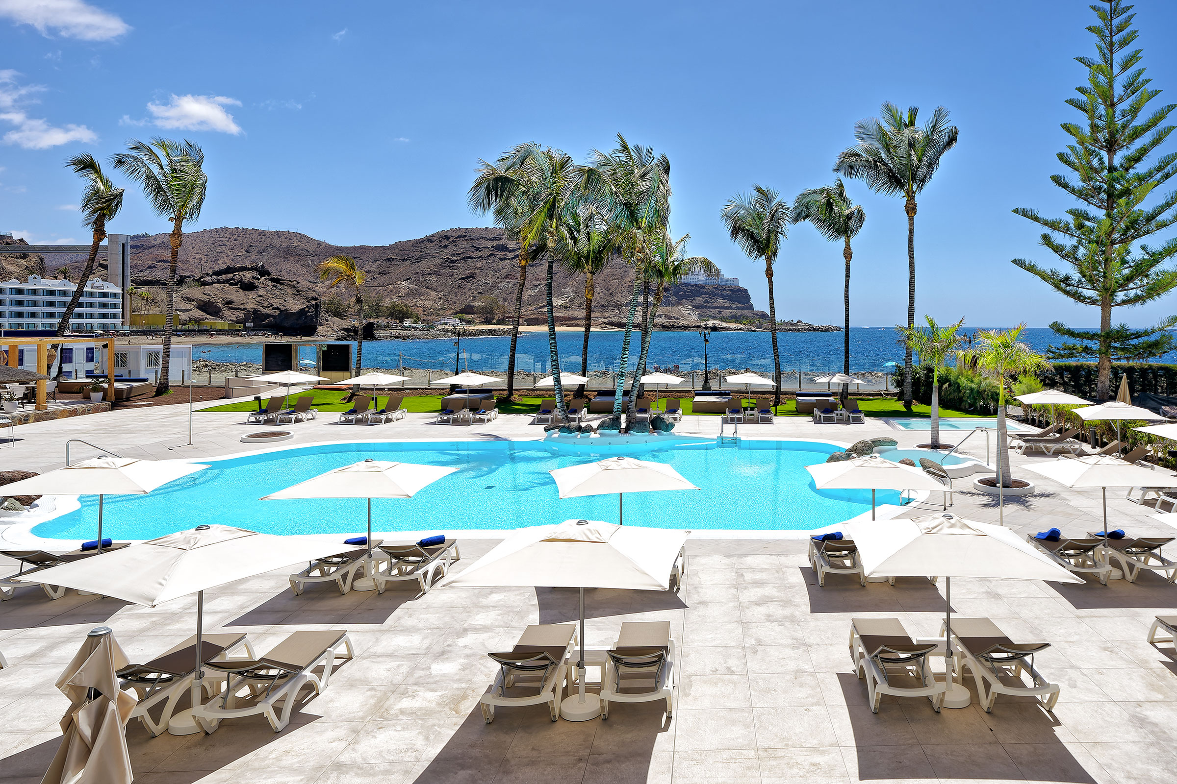 This hotel is set within a resort located in Playa del Cura, a privileged area in the south of Gran Canaria. It is 150 m from the nearest restaurants, shops and bars, and guests will find the town centre just 4 km away and just 10 minutes from Puerto de Mogán. It lies only 25 minutes' drive from the airport. This hotel comprises rooms that feature new trends in interior design, with light and airy spaces. Facilities on offer to guests at this air-conditioned establishment include all comodities needed for a well rest. This hotel features an enjoyable pool area, sun loungers and parasols. The sun terrace is cosy, the garden is appointed with palm trees and natural stone, and offers direct access to the sandy beach. Guests can also relax at the wellness centre or work out in the gym. AI PREMIUM: branded alcoholic drinks, free safe, minibar stocked on arrival, 2 themed dinners (min stay 7 nights), bathrobe, slippers, pool towel, late breakfast, late check-out (subject to availability), special amenities in bathroom and discounts on massages & treatments.