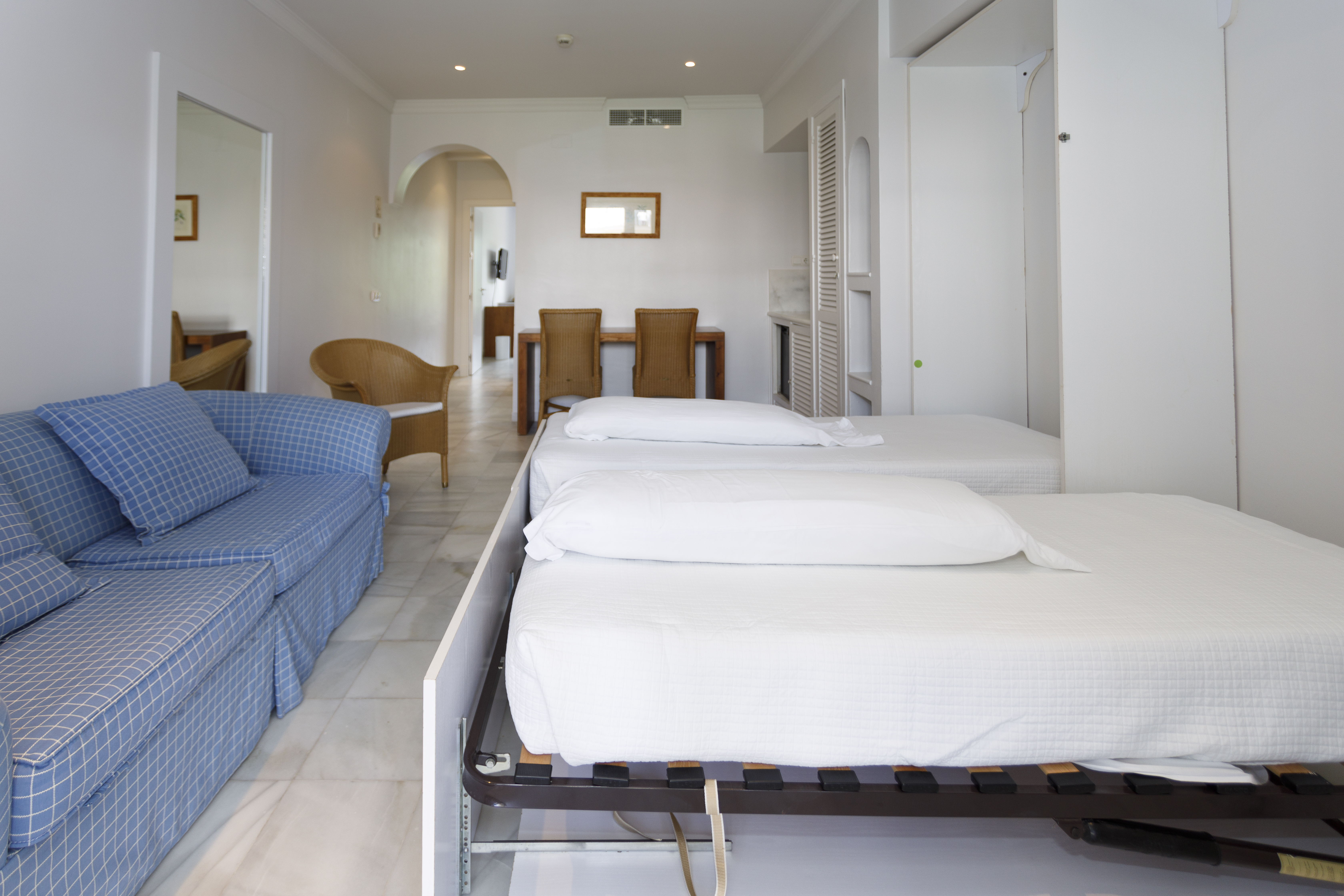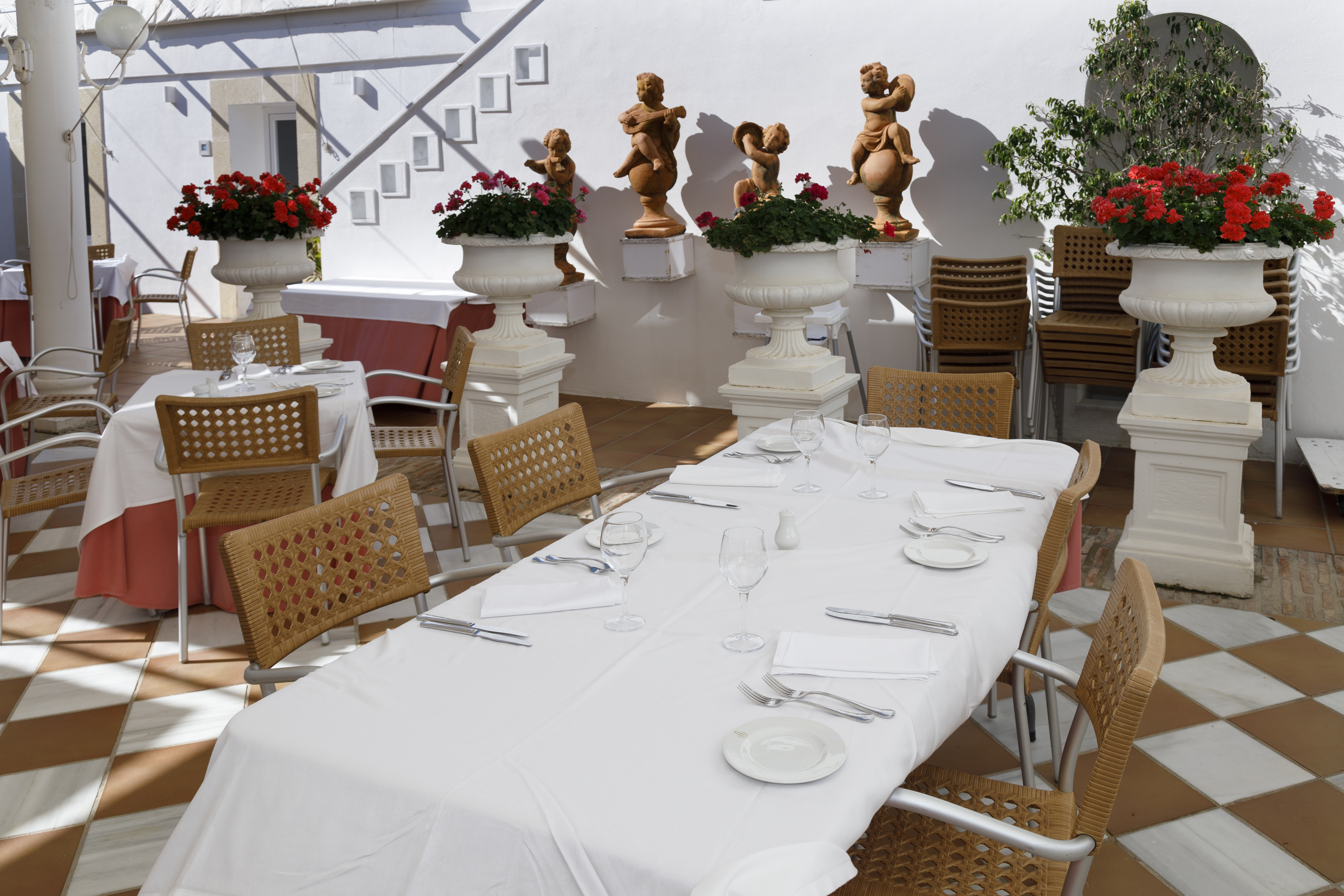 This hotel boasts a serene setting on the Costa De La Luz. It is set amidst pine forests and dunes, overlooking a beach. The historical and commercial centre of Rota can be found just 2.5 km away. The hotel is just a few metres away from the nearest bus stop. Jerez de la Frontera Airport is conveniently located just 40 km away. The hotel is designed in an Andalusian style. The guest rooms are beautifully arranged around two large courtyards, where orange trees, plants and flowers around. The rooms are cosy and welcoming, in soothing tones. The hotel features an extensive choice of facilities and services, offering visitors a high level of comfort and convenience.