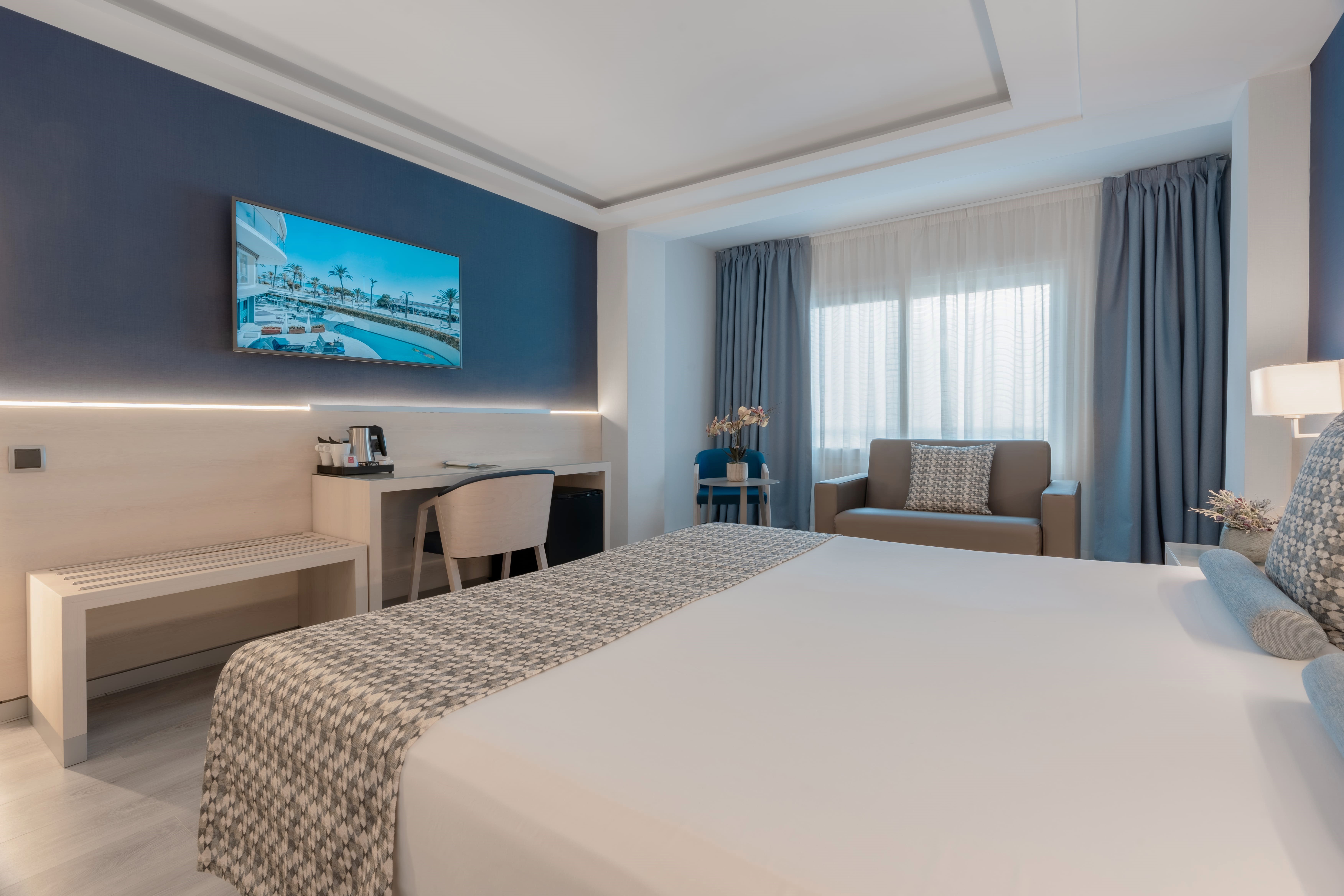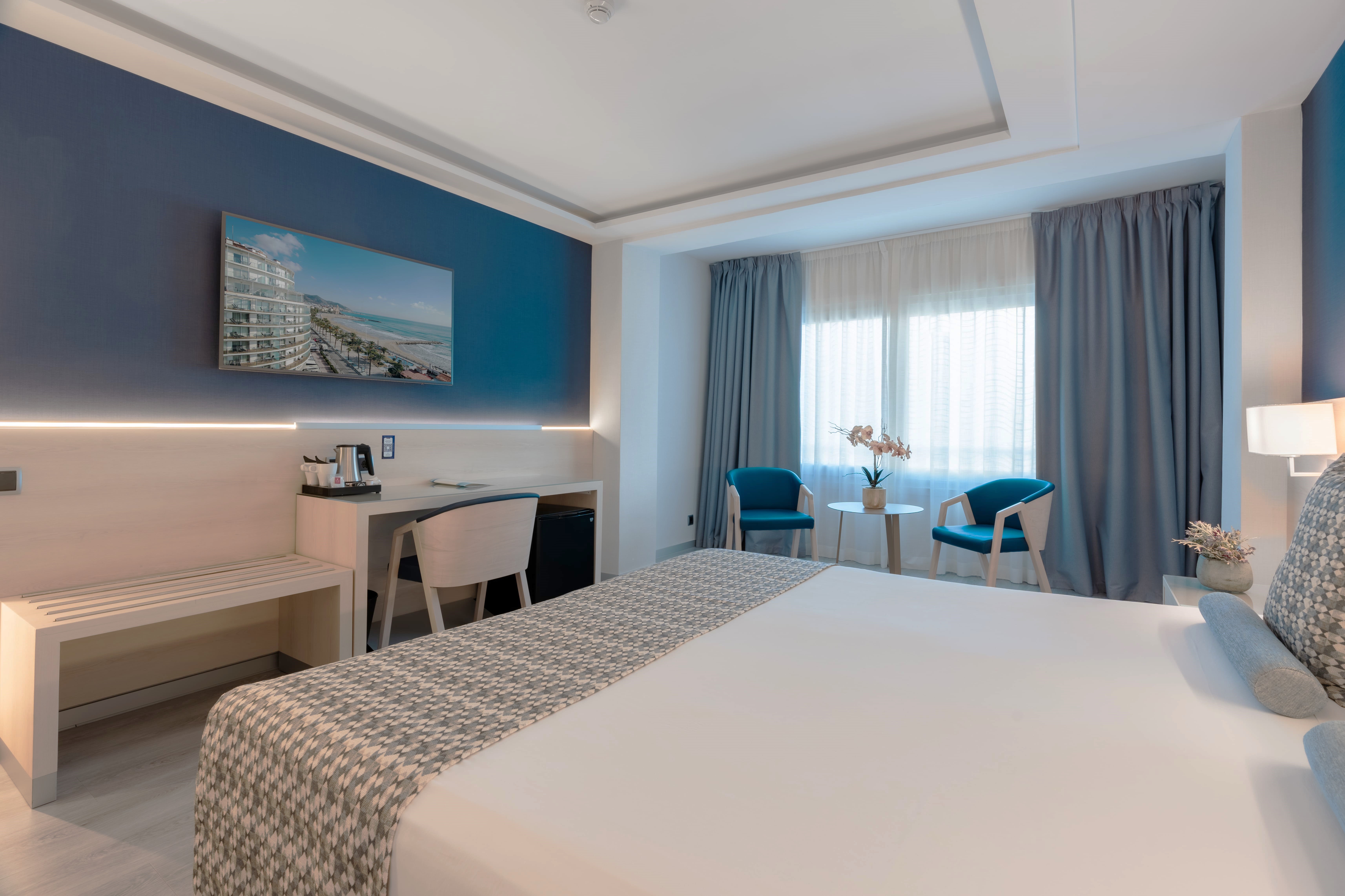 This hotel is nestled amidst beautiful palm trees, boasting spectacular views over the sea and the promenade of Sitges. Guests will find themselves just a few metres away from Bassa Rodona Beach. The hotel is also located just a short distance away from the centre of the town, where guests can explore a host of shopping opportunities, dining options and entertainment venues. This wonderful hotel is located just 1 km from links to the public transport network, while Aiguadolc Harbour is situated just 2 km away. This wonderful hotel offers beautifully-appointed accommodation options, delightful dining in one of 2 restaurants and a bar. This hotel is sure to impress even the most discerning traveller.
