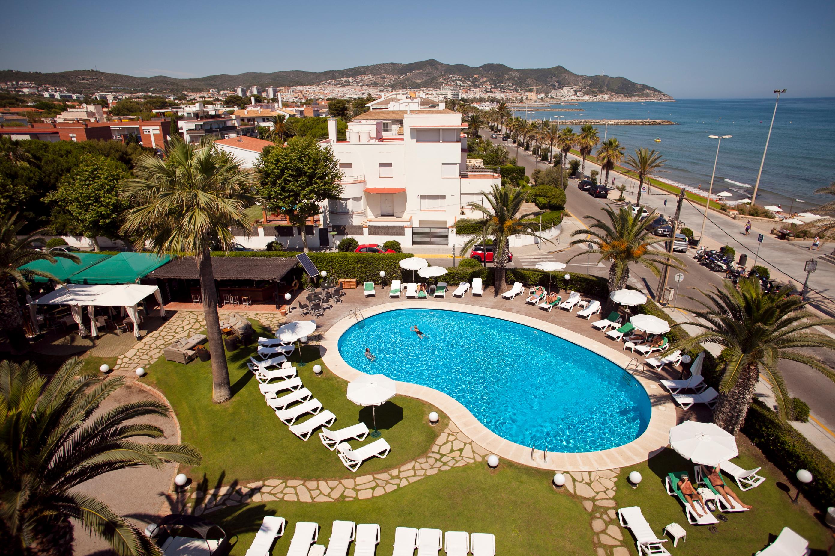 Very well appointed 4 star Hotel located right in front of the beach, in a quiet road at only ten minutes walk from Sitges centre of town. All its 42 rooms are very well decorated and furnished with pastel colours, they all have garden or sea view. Hotel has a very popular restaurant located in a renovated annex tower dating back 1924, which offers delicious a la carte Mediterranean dishes. Among all other services Client have at their disposal a very large swimming pool surrounded by greenery.