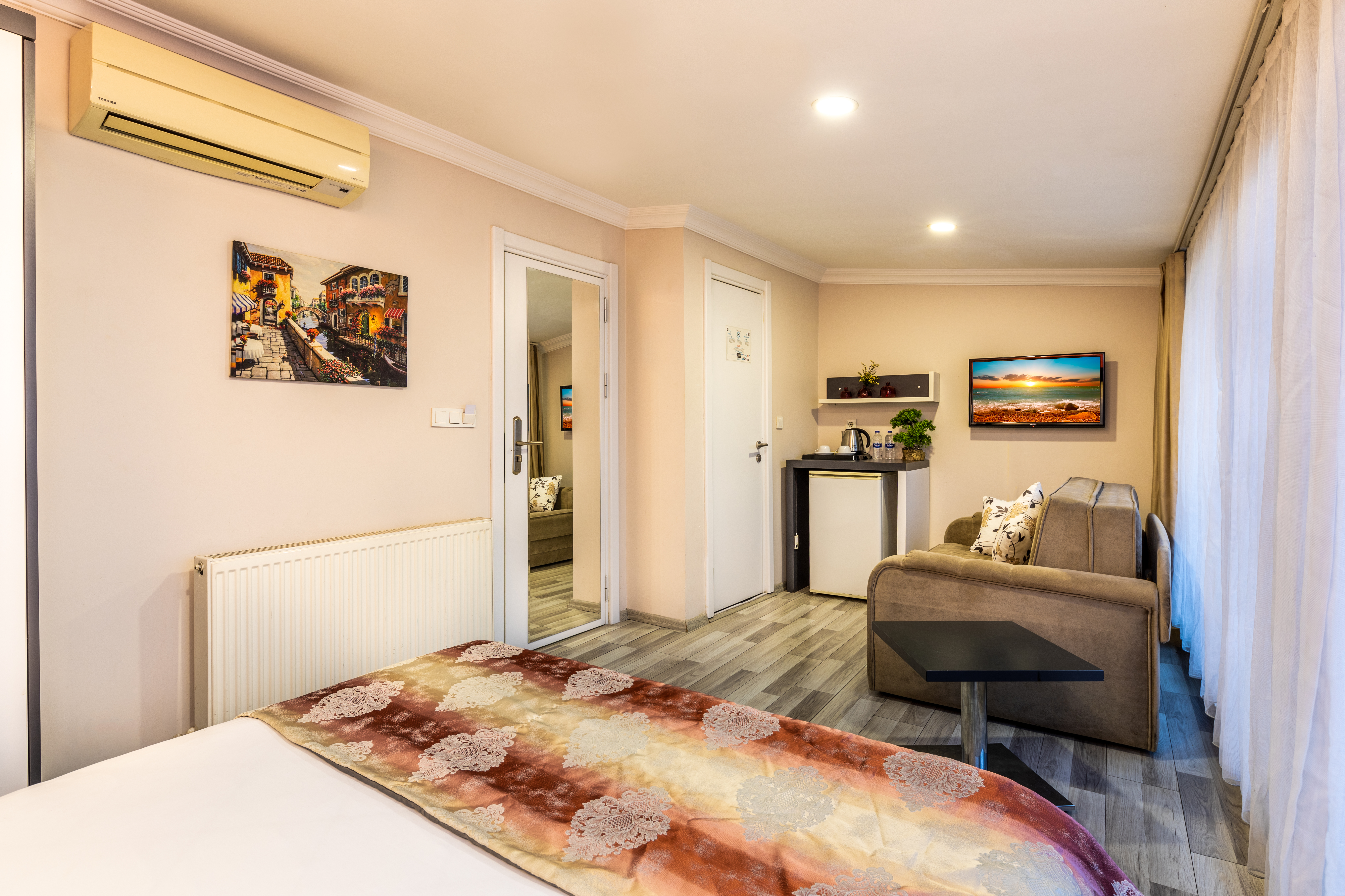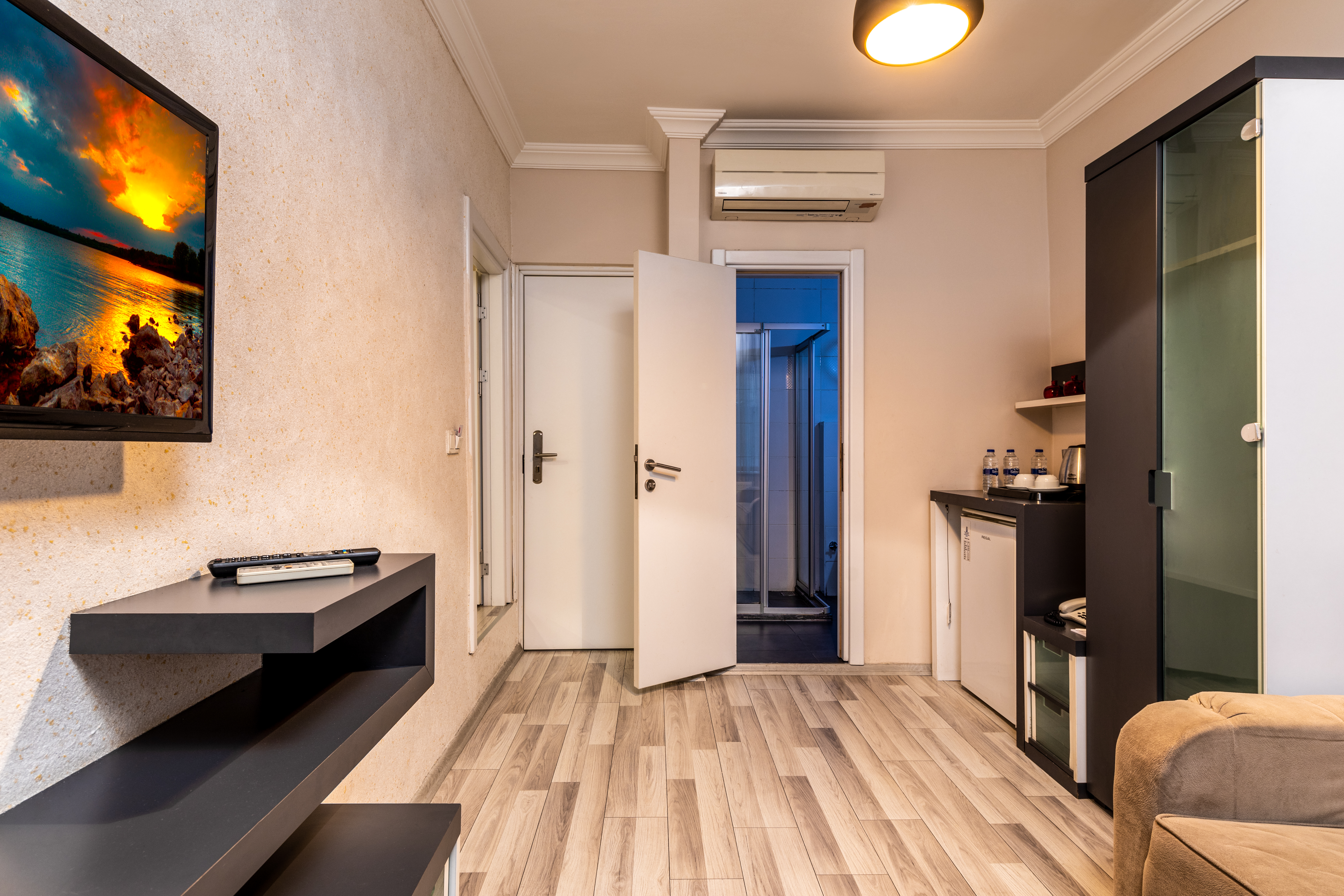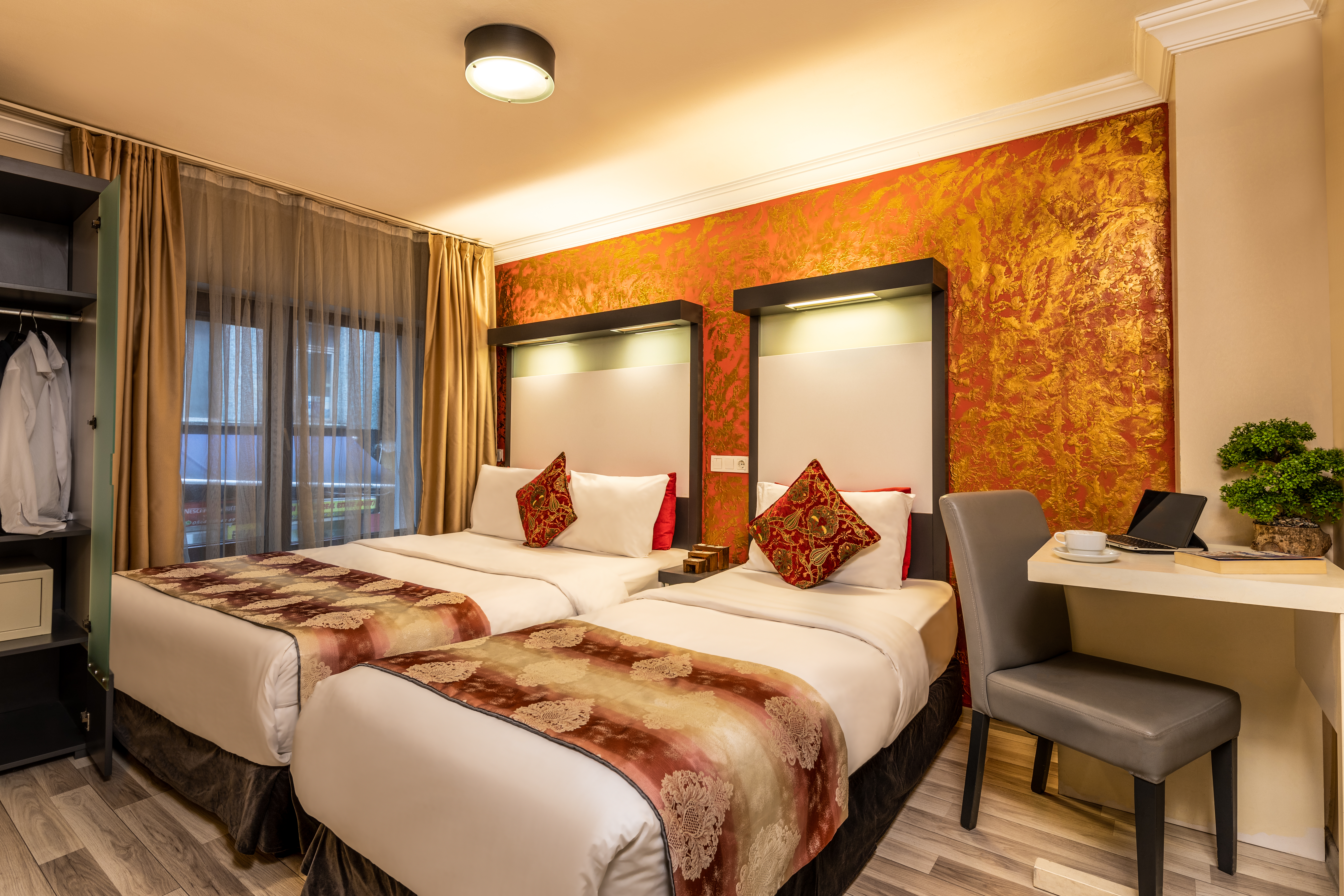 Located in the heart of modern Istanbul, just a few metres away from the Istiklal Avenue and Taksim Square, this suite hotel offers comfortable accommodation for guests travelling on both business and pleasure. The hotel is within walking distance from the Lufti Kirdar Exhibition and Convention Centre as well as from numerous tourist attractions of the city, such as the Grand Bazaar, the Blue Mosque, the Topkapi Palace or Hagia Sophia. The air-conditioned suites are tastefully decorated and equipped with modern amenities to ensure a pleasant stay. Guests can enjoy breakfast at the lobby area or in the privacy of their rooms. There is a communal kitchen and a restaurant serving beverages and fast food. On the hotel surroundings, guests will find numerous bars, cafés and restaurants. The iconic Galata Tower is merely 500 metres from the property and the Ataturk Airport is 20 km away.